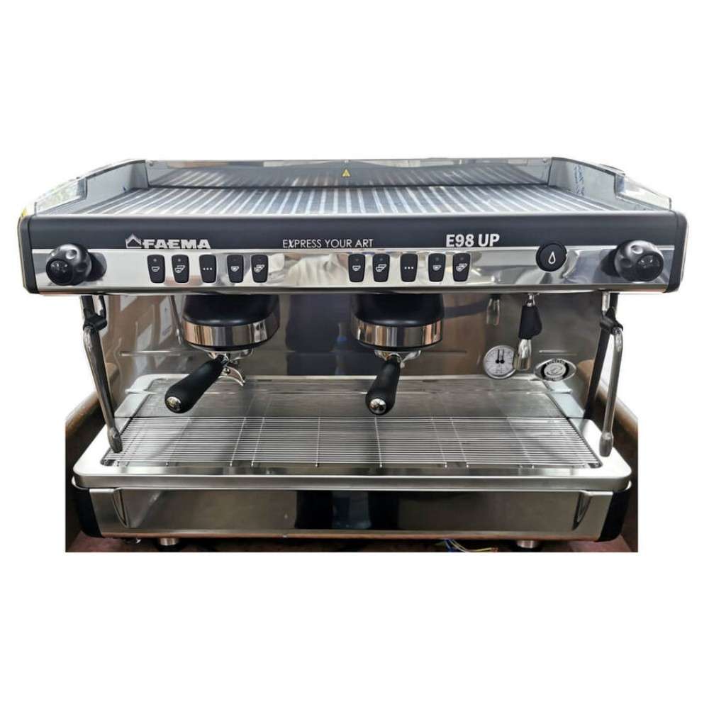 The Faema E98UP A/2 is an automatic 2-group espresso machine featuring an 11-liter boiler, two steam wands, and a hot water wand. Its ergonomic design and elongated steam wands ensure consistent quality